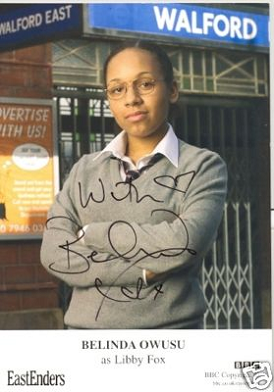 6"x4" promo card signed by Belinda Owusu who plays Libby Fox in Eastenders.