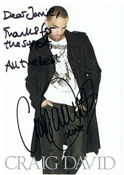 6"x4" photo signed - dear jamie, thanks for the support, all the best, craig david