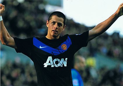 8"x12" photo signed by Javier Hernández Balcázar (born 1 June 1988), who is also known simply as Chicharito (Spanish: little pea), is a Mexican footballer who plays as a forward for Manchester United, being the first Mexican to do so.