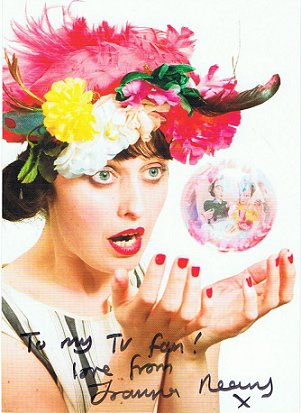 6"x4" card signed by Joanna "Jo" Neary who is a British comedian, writer and actress. Her solo, character-based stage shows include Youth Club and Joanna Neary Is Not Feeling Herself, which received a Perrier Best Newcomer award nomination in 2004.