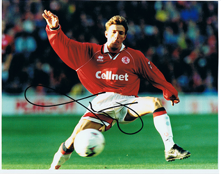 8"x10" photo in action for Middlesbrough, signed by Brazil Legend Juninho.