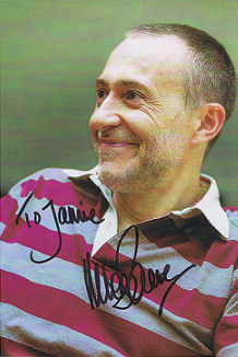 8.5"x5.5" photo signed by Michel Albert Roux 'To Jamie', who known as Michel Roux, Jr., is a French-English two-star Michelin chef at the London restaurant Le Gavroche.