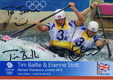 Tim Baillie and Etienne Stott. The card is signed 'to jamie'.